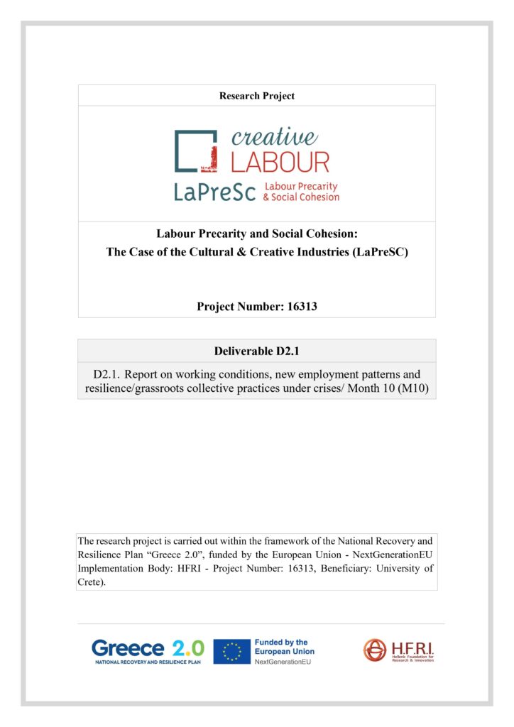αποτελεσματα/διαχυση Ποιοτικη Ερευνα Έκθεση για τις συνθήκες εργασίας, τις νέες μορφές απασχόλησης και την ανθεκτικότητα/ τις συλλογικές πρακτικές «από τα κάτω» σε περιόδους κρίσης (στα αγγλικά)